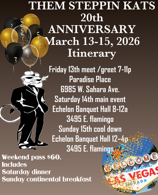Included are flyers and listings for Las Vegas Black nightlife and things to do (social events, restaurants, clubs, bars, etc.) and may include Chicago Style Steppin(g) classes and workshops.